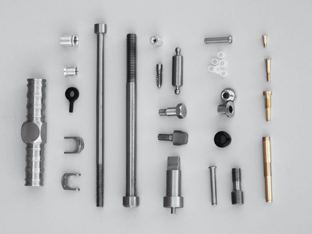 Component Types Bushes, Pins, Shafts, Studs, Spacers Screws, Nozzles, Nuts, Washers Special profiles with slots, grooves, or threads Cross holes, knurling, and undercuts